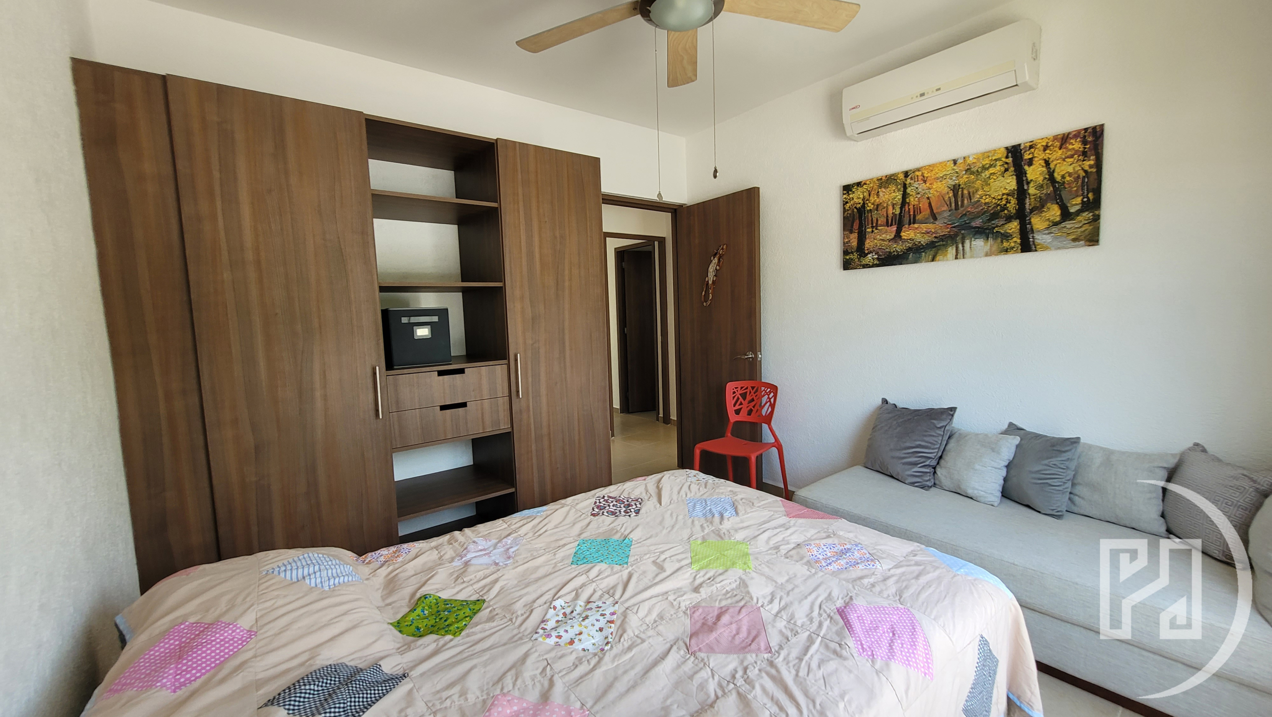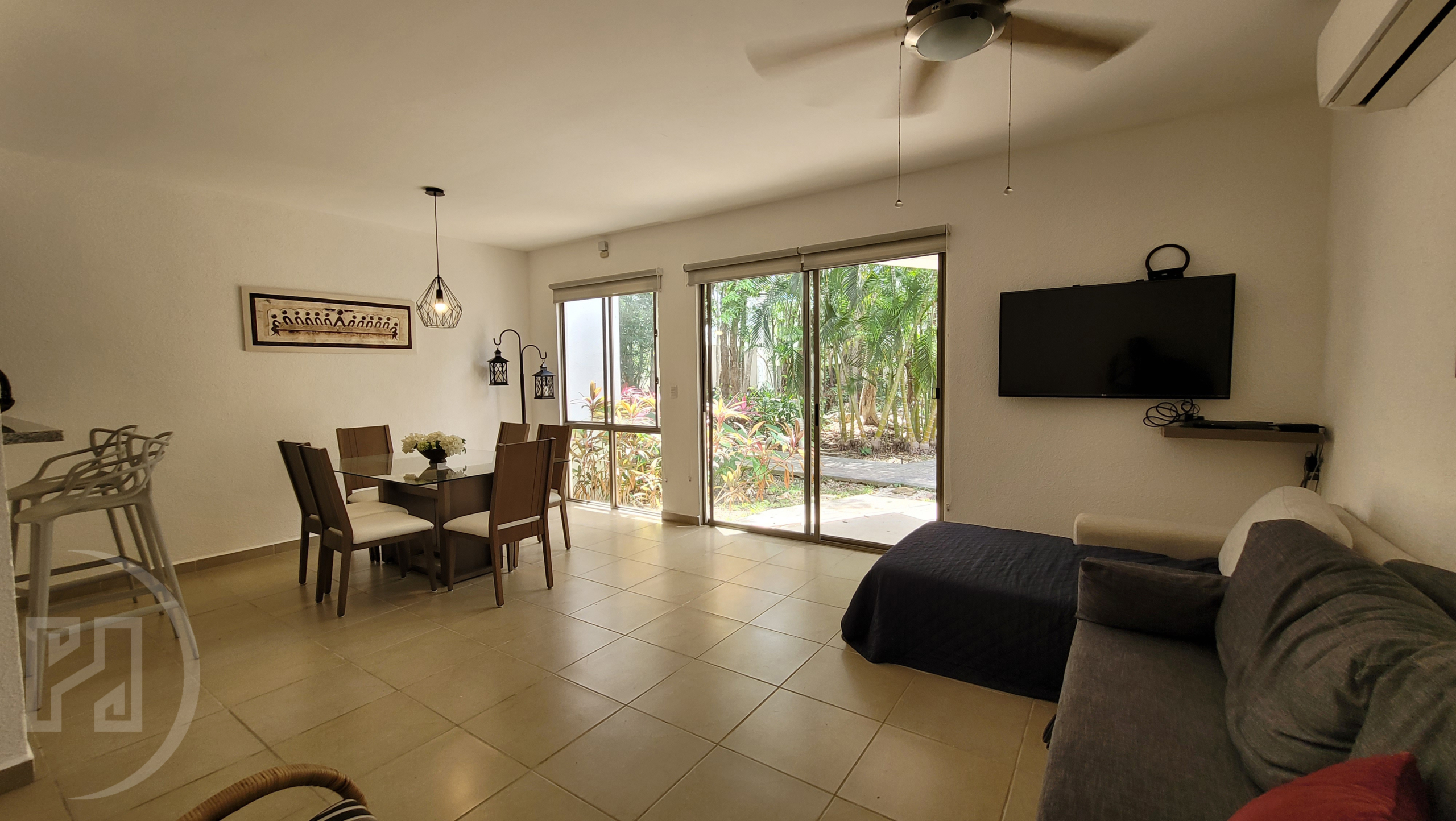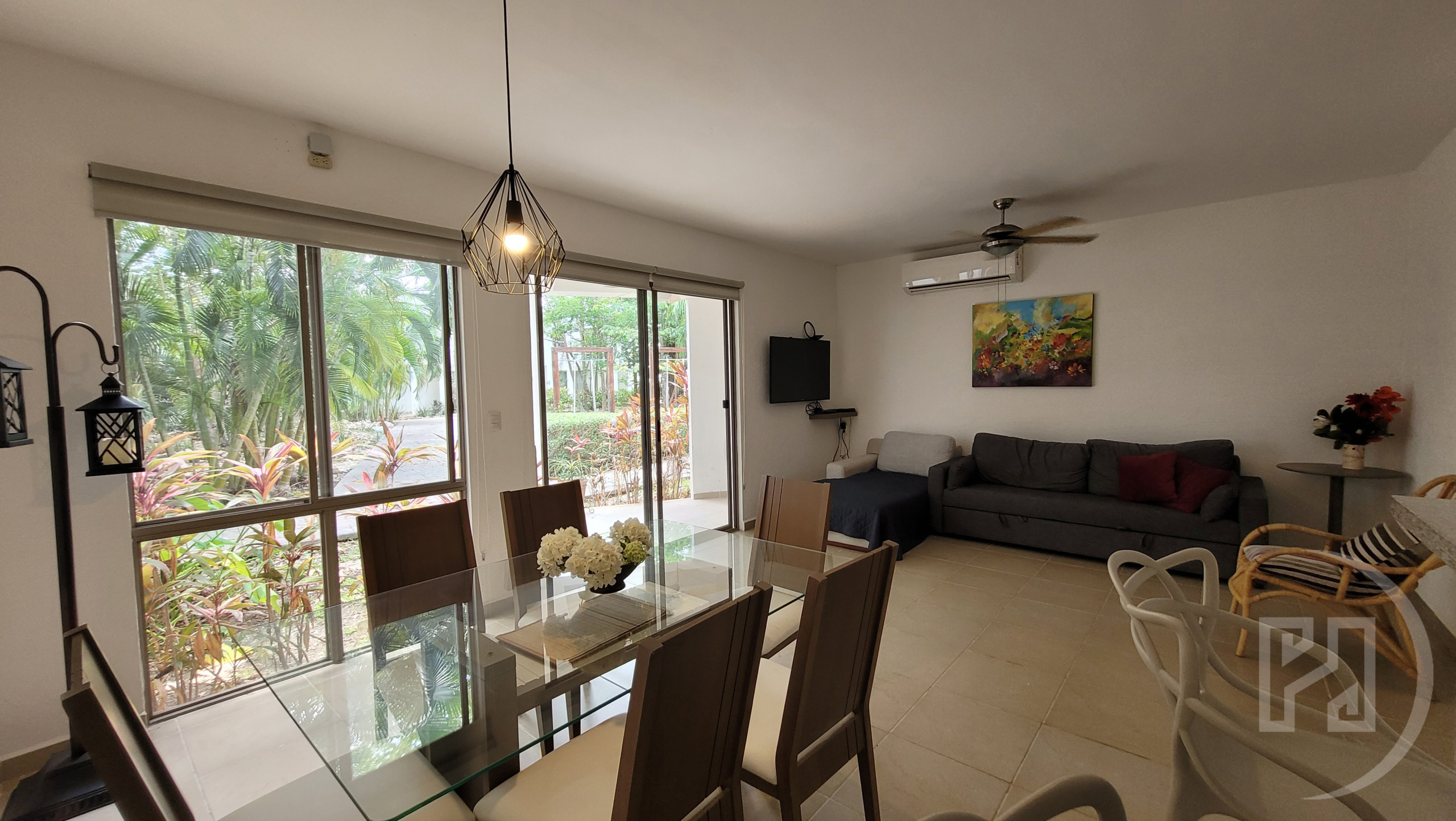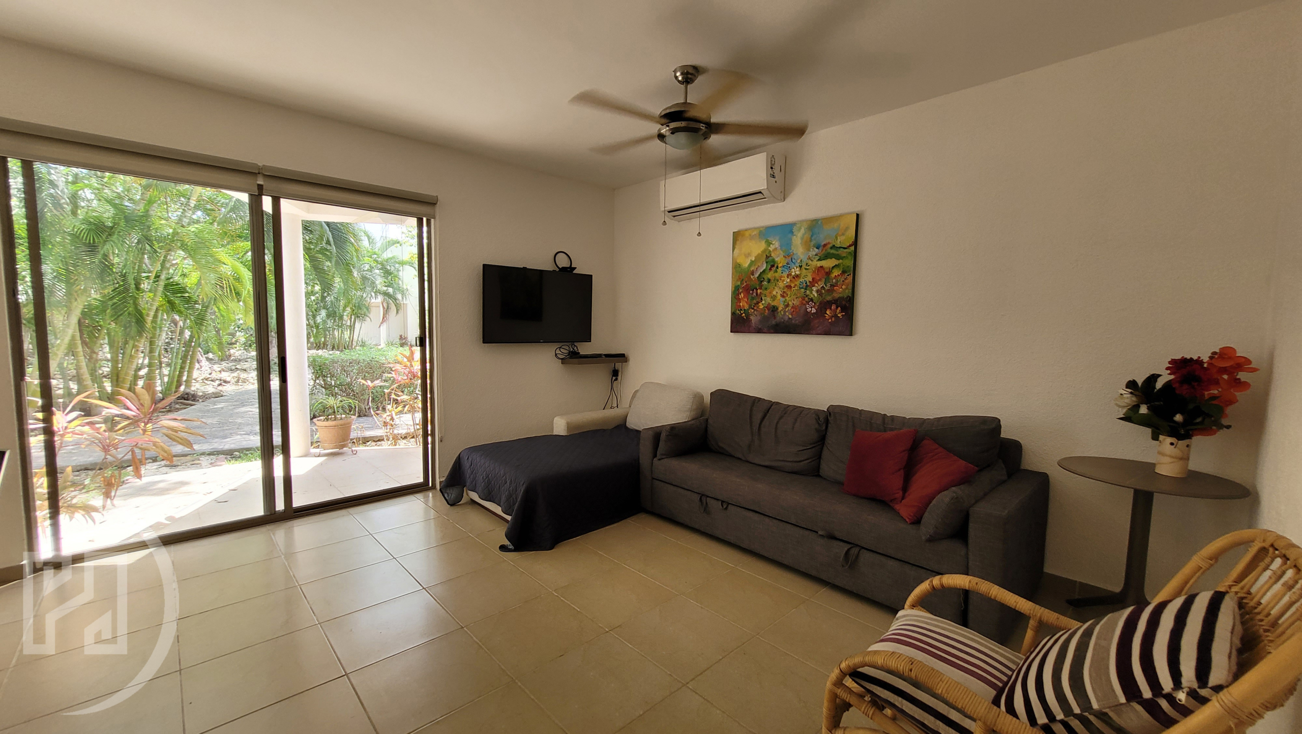 Equipped and furnished delivered with:Β 4 A/Cs (minisplits), ceiling fans, kitchen with stove, fridge, black out curtains, stationary gas tank, 3 bed with mattress, sofa-bed, ceiling water tank, underground water cistern, water pump, moskito nets in every window, smart lock.