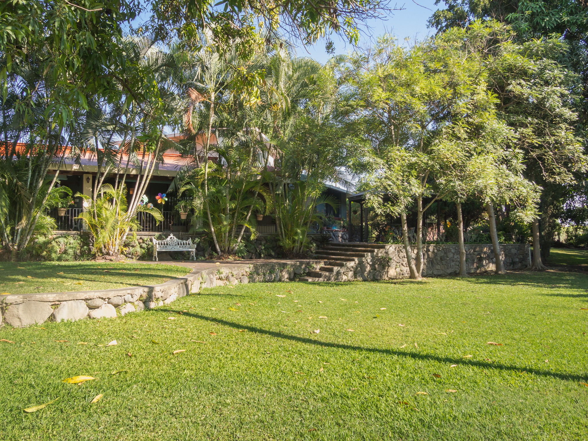 Amplias áreas verdes con árboles frutales, andadores con mucha vegetación, cancha de basket, seguridad 24/7, acceso controlado.
