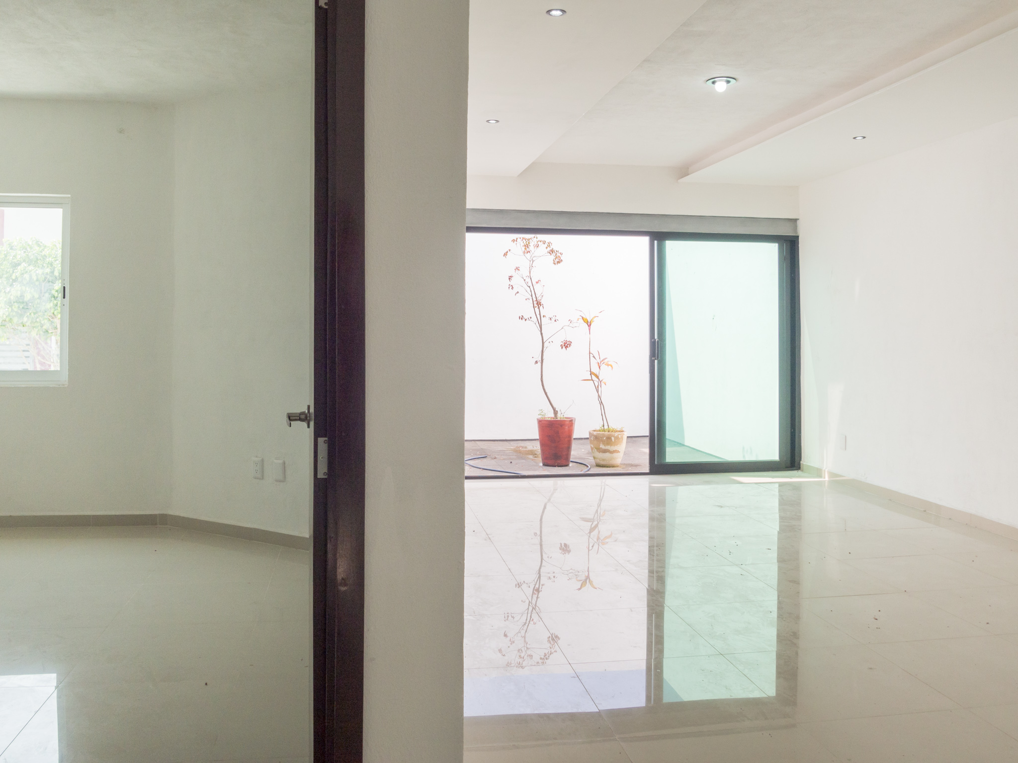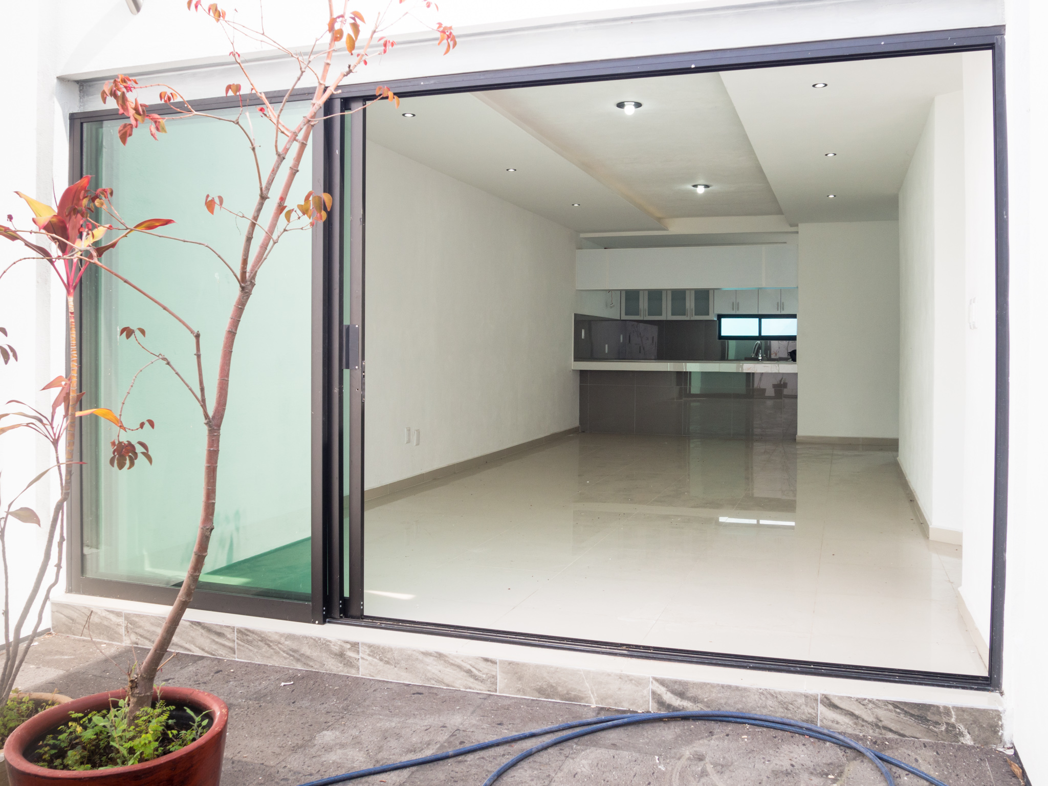 Clima más fresco, varios parques, zona familiar tranquila, modelo de 1 nivel con 2 recámaras, principal con baño completo, terraza frontal, patio trasero, jardín central, área de cocina y comedor con vista al jardín central, gran iluminación natural, preparación para segundo nivel, diseño contemporáneo.
