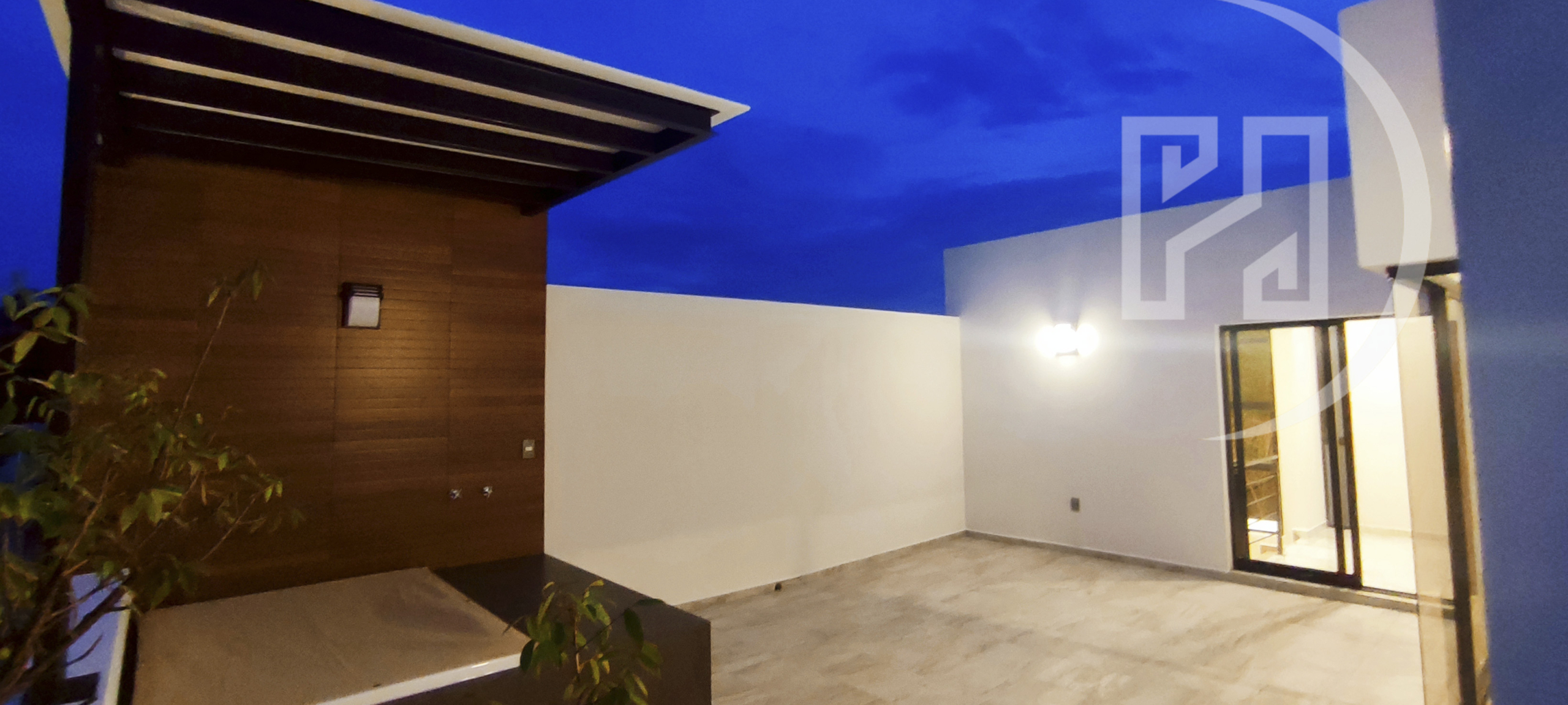 Modelo de 2 niveles con 2 recámaras ideal para familias pequeñas o parejas, 1 recámara en planta baja con baño completo y vestidor, grandes espacios, terraza en planta alta con jacuzzi de lujo, uso de distintos materiales y acabados que logran una armonía y un espacio único para vivir, cada recámara cuenta con baños completo, layout de recámaras estratégico para mayor privacidad dentro de la casa, cuenta con puertas deslizables, gran iluminación natural, diseño contemporáneo.