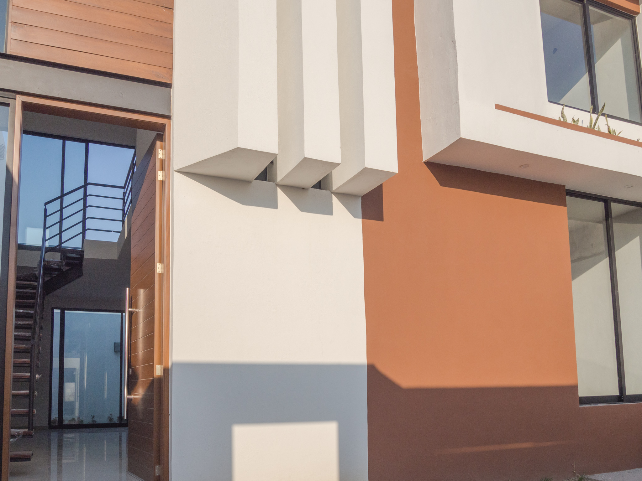 Doble altura en el recibidor 2 baños completos 1 abajo, 1 arriba, cuenta con puertas deslizables brindando mayor acceso al patio, gran iluminación natural, diseño contemporáneo, cuarto de servicio techado, garage con puerta cerrada.