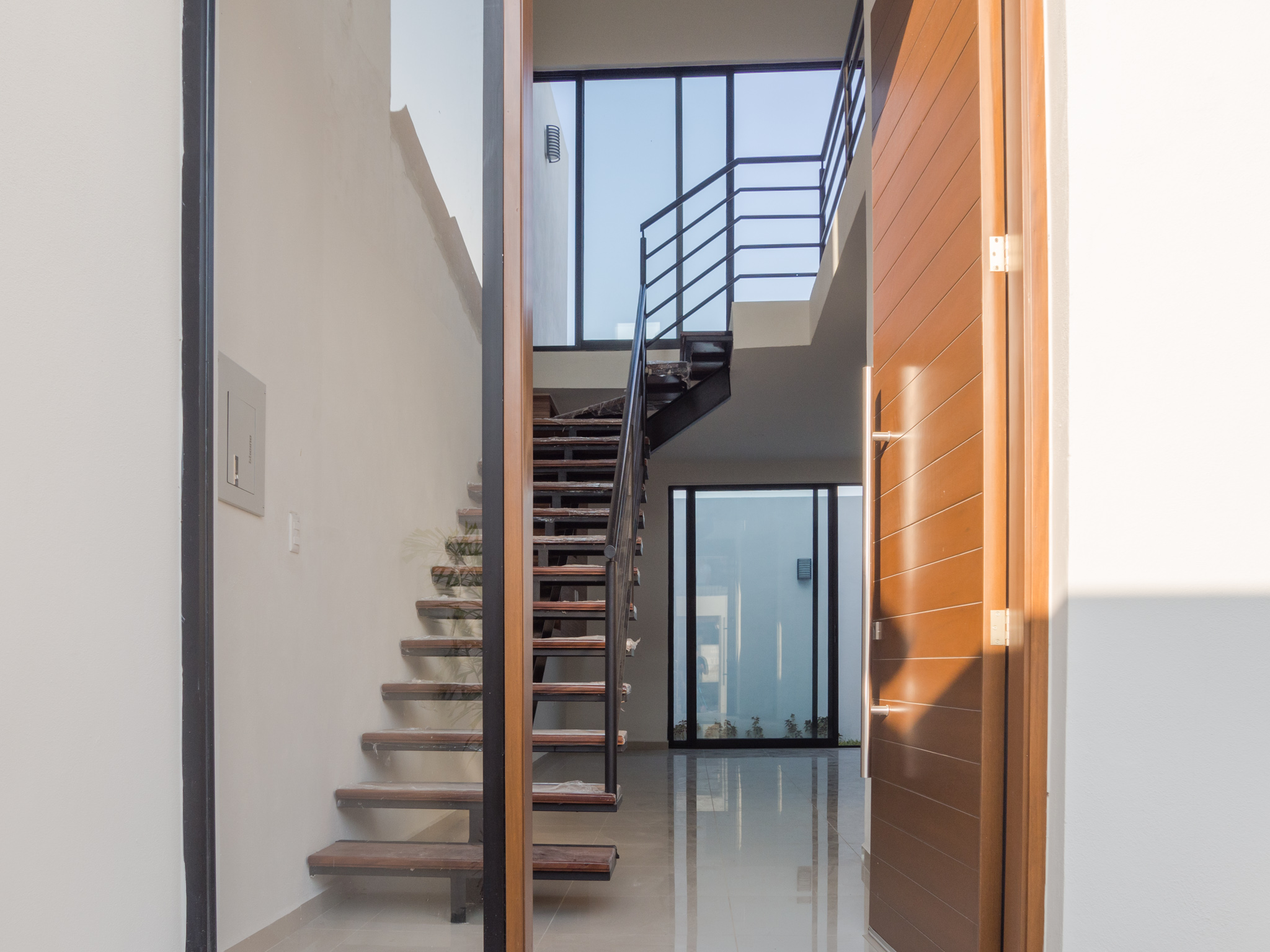 Modelo de 2 niveles con 3 recámaras ideal para familias, 1 recámara en planta baja con baño completo, diseño bioclimático que brinda un ahorro en consumo eléctrico, se mantiene mayor tiempo fresca, cubo de luz con jardín interior creando un espacio único para vivir.