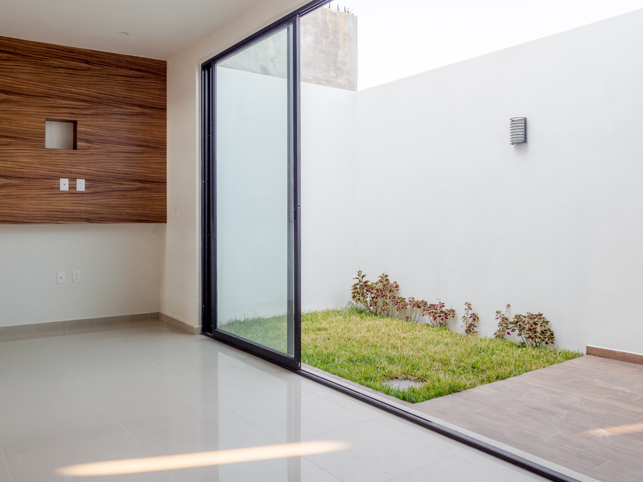 Patio con jardín y 1 jardín central con cubo de luz