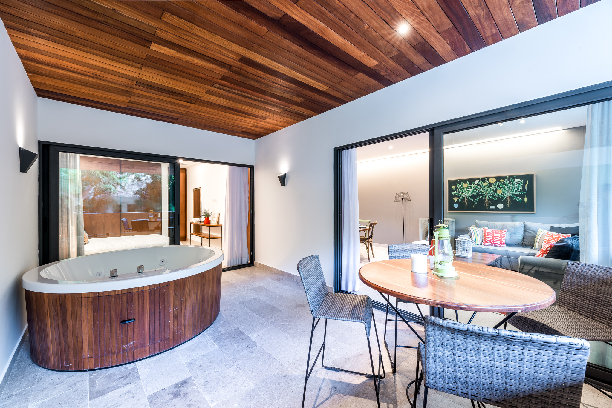 This mindblowing condo is located right next to Mamitas Beach. Which is one of the most privileged parts of Playa del Carmen. It is literally steps away from the sea and a few more steps from 5a Avenida, which positively sparkles with restaurants and exclusive shops. The same zip code features gastronomy, film and jazz festivals.