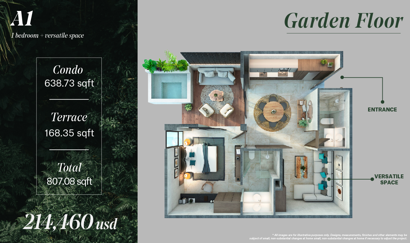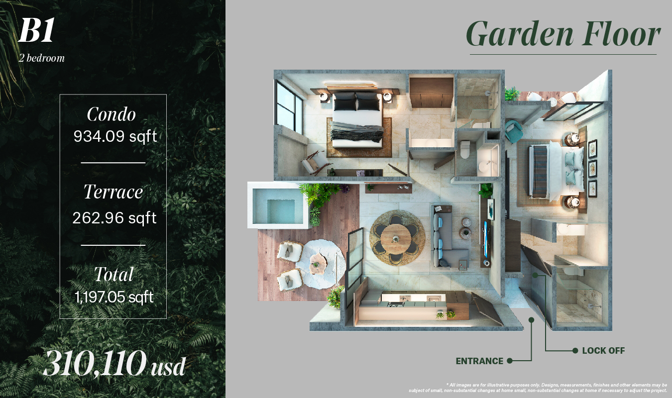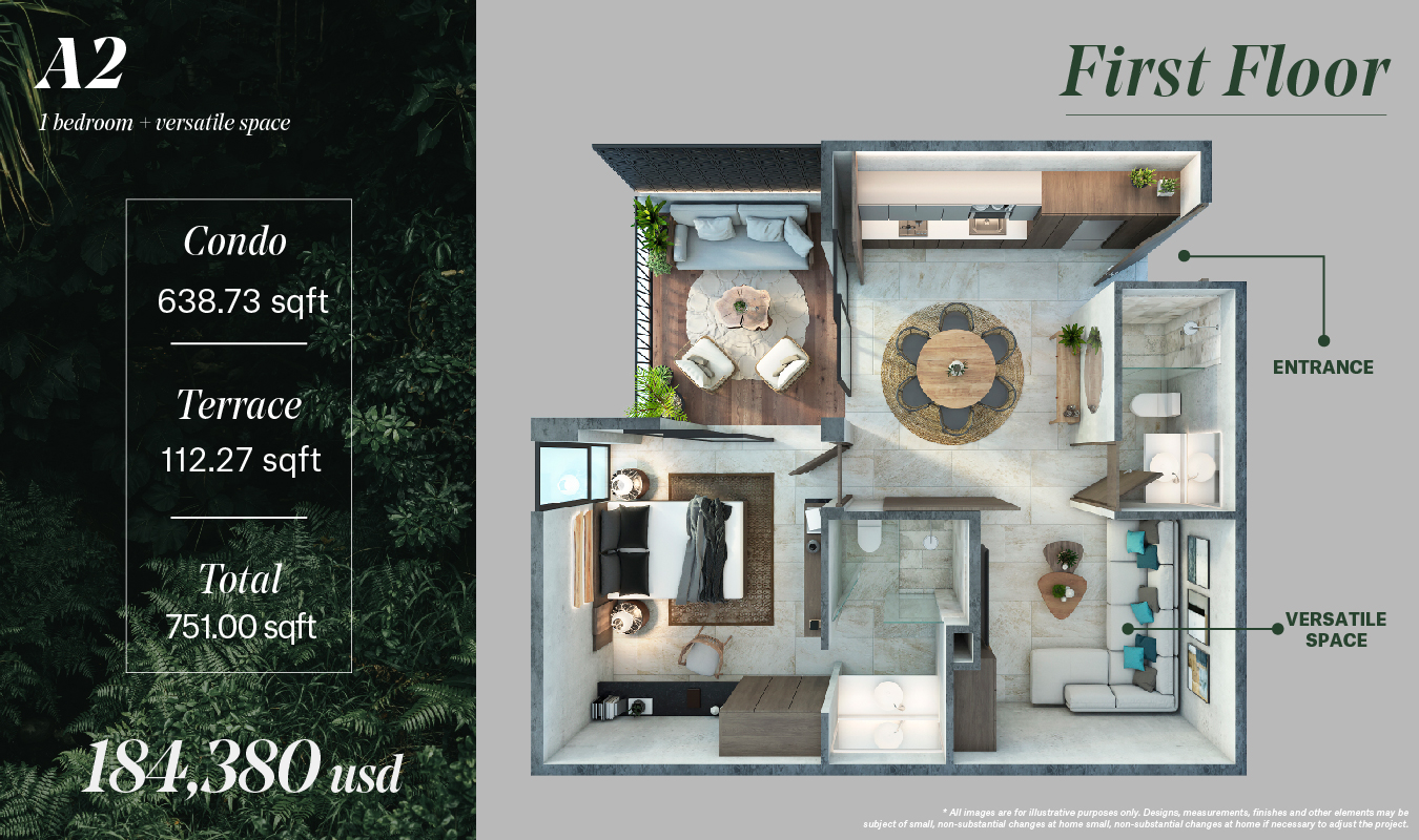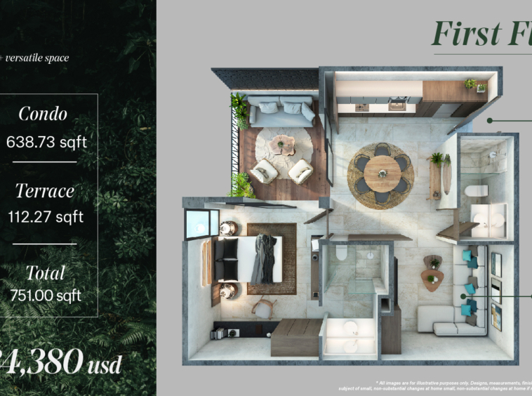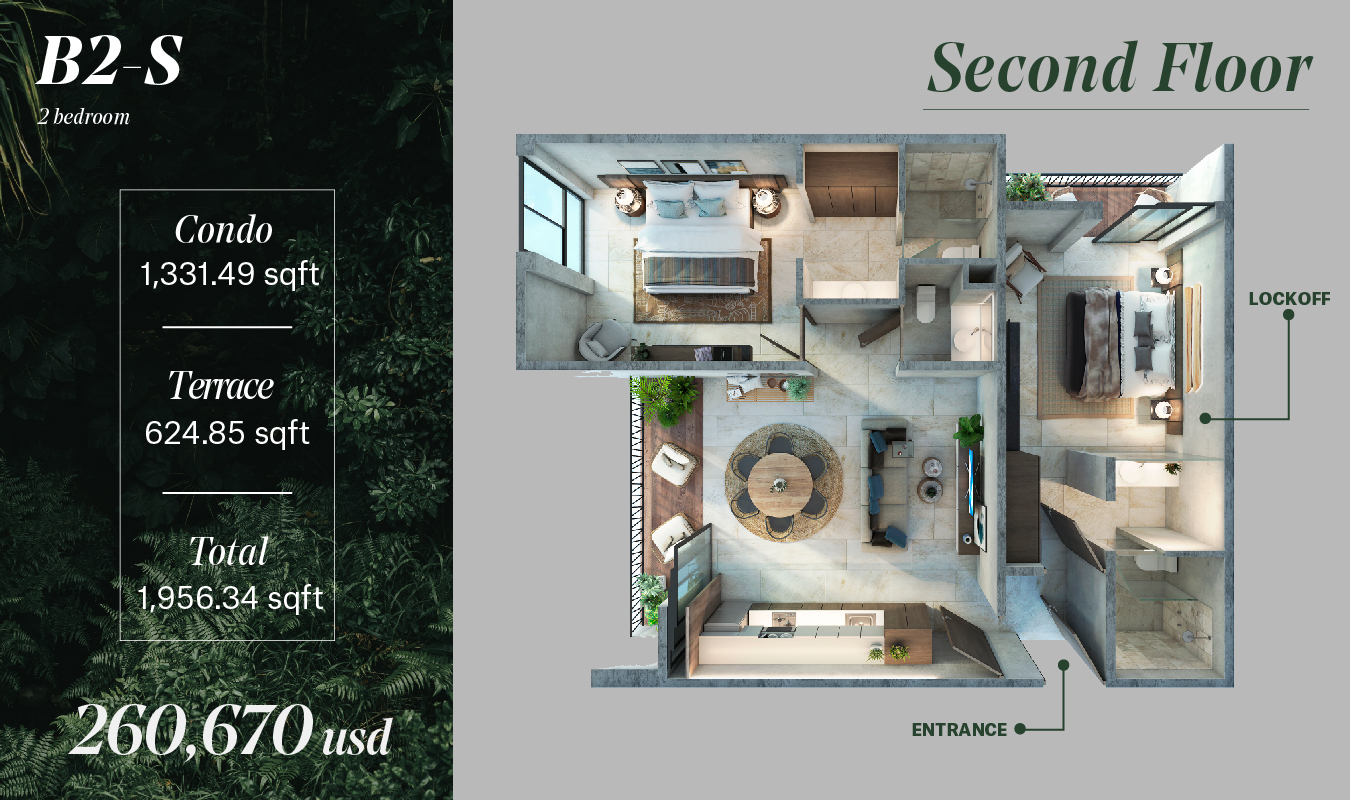 UXUL TULUM is a mixed-use development concept with the perfect location, it has a residential complex with 120 apartments from studios, 1 to 2 bedrooms & PHs, with Lock-off option & Vacation Rental program,