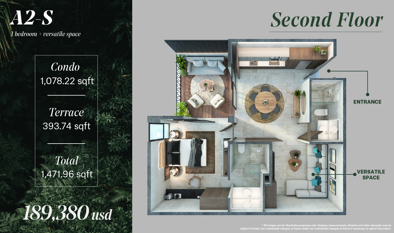 1 bedroom & 2 full bathroom + versatile space + terrace (2nd FLOOR)
