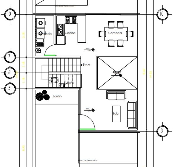 comedor con vista al jardín central y trasero, gran iluminación natural, diseño contemporáneo.